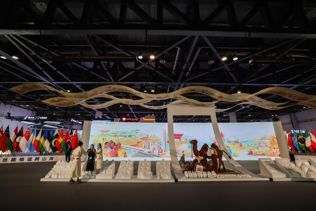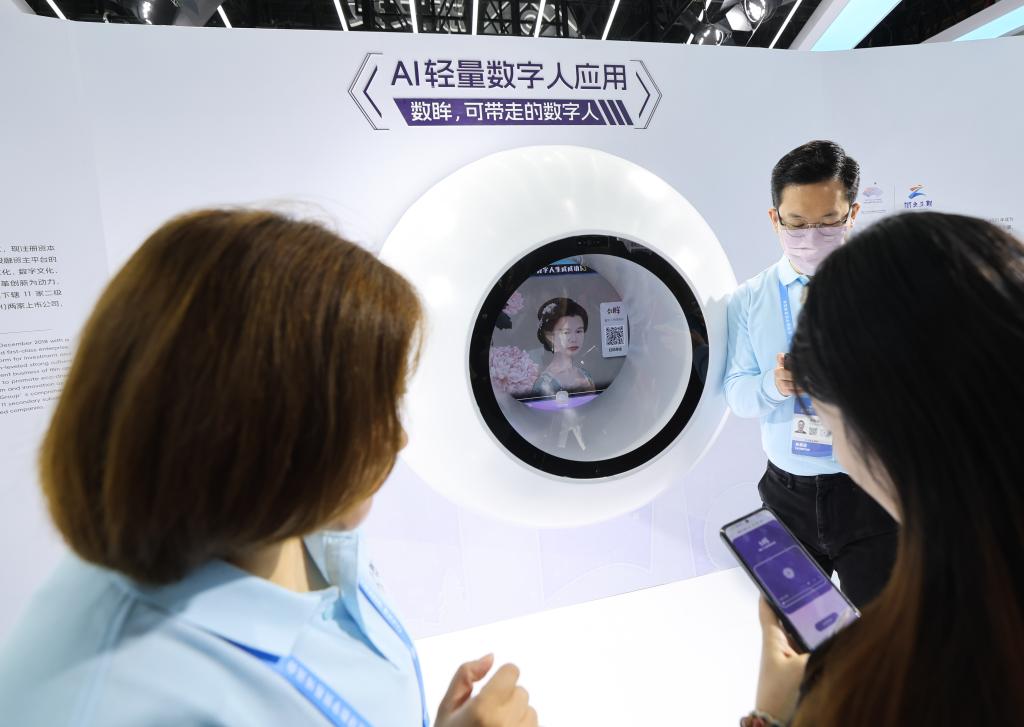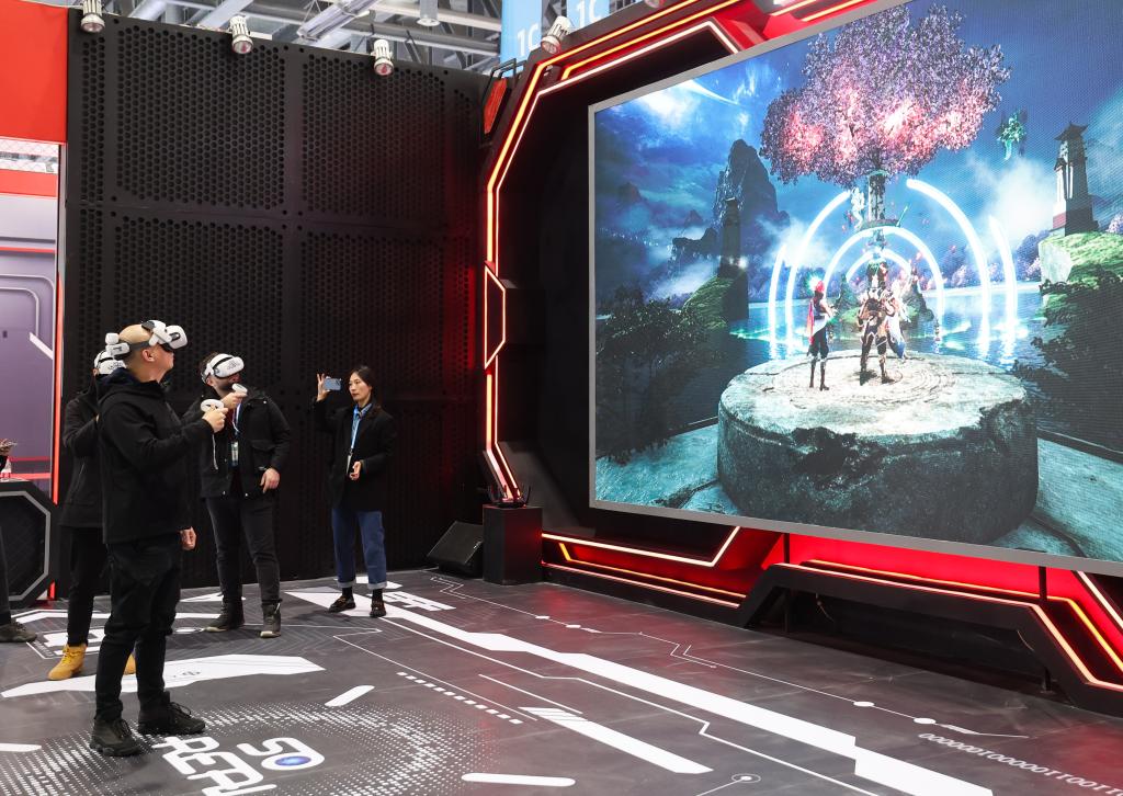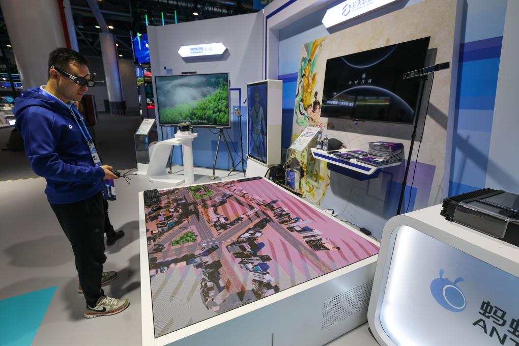 11月23日,在第二届全球数字贸易博览会上,参观者戴上VR眼镜漫游虚拟城市。新华社记者 徐昱 摄 本届数贸会上,阿里巴巴、华为、百度、360、腾讯、科大讯飞等企业,带来各类人工智能大模型,显示出在教育、医疗、城市、办公、汽车、人机交互等领域的前沿技术探索。 2023年出台的《数字中国建设整体布局规划》指出,建设数字中国是数字时代推进中国式现代化的重要引擎,并提出“到2035年,数字化发展水平进入世界前列,数字中国建设取得重大成就”。 支持建设开放型世界经济 走进数贸会“丝路电商”国际主题馆,以虚拟现实形式集中展现30个国家的风土人情、通商场景、贸易产品等,吸引大量观众驻足。