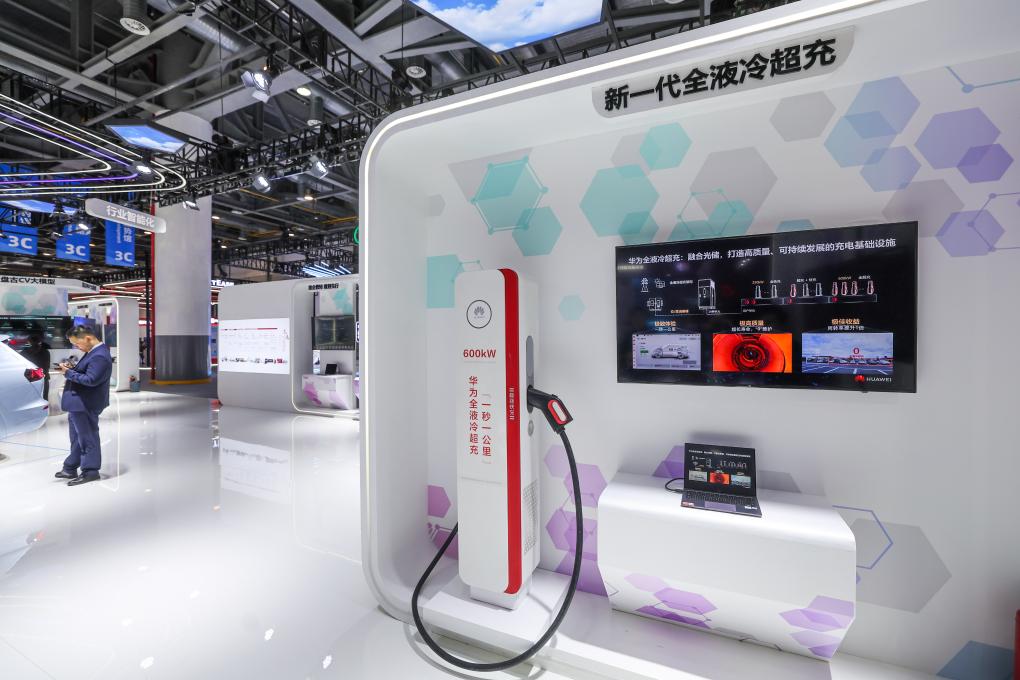 这是11月23日在第二届全球数字贸易博览会展馆内拍摄的华为全液冷超充技术展示。新华社记者 徐昱 摄 第二届全球数字贸易博览会汇聚800多家数字贸易企业,包含50多家世界500强企业,50多家全球、全国数字贸易百强榜单企业,有100多项“数字新品”首发首秀首展。