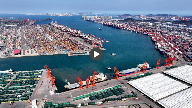 航拍山东港口青岛港全流程自动化纸浆码头(央广网记者 唐磊 摄)