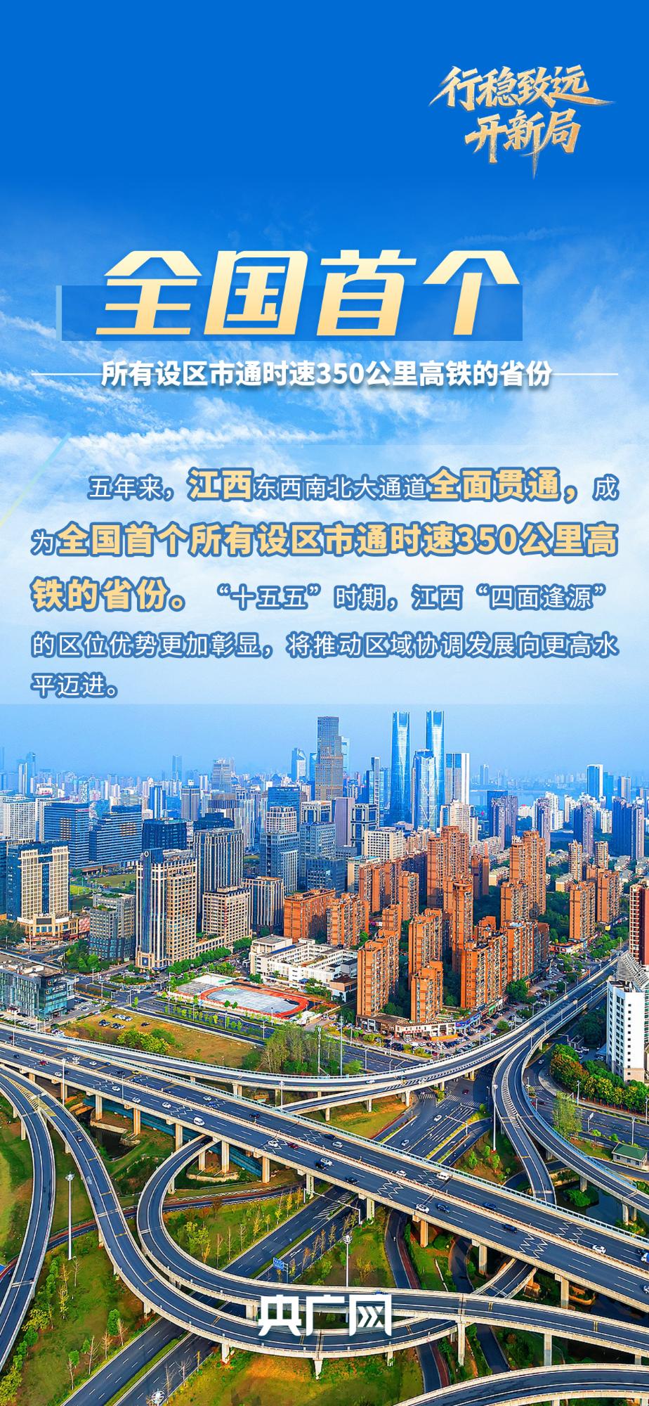 作为不沿边、不靠海,缺乏地理区位优势的内陆省份,5年来,江西着力打破发展瓶颈、拓宽发展空间。当前,江西东西南北大通道全面贯通,成为全国首个所有设区市通时速350公里高铁的省份,为全国范围内的人才交流、生产要素流动提供了基础。