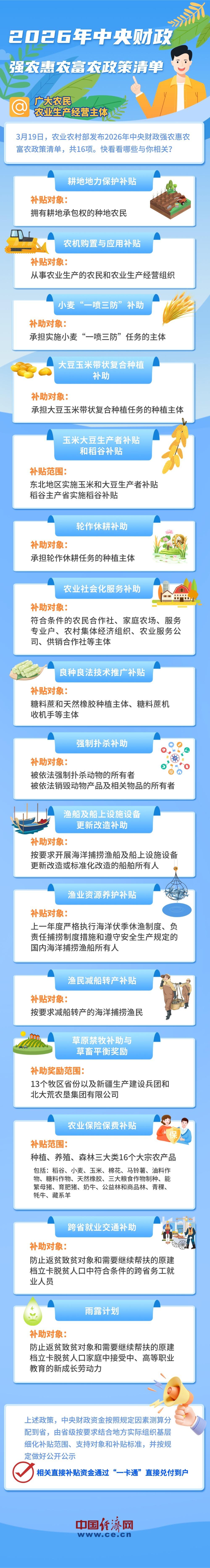 【图解】2026年强农惠农政策清单来了!16项补贴直达农民