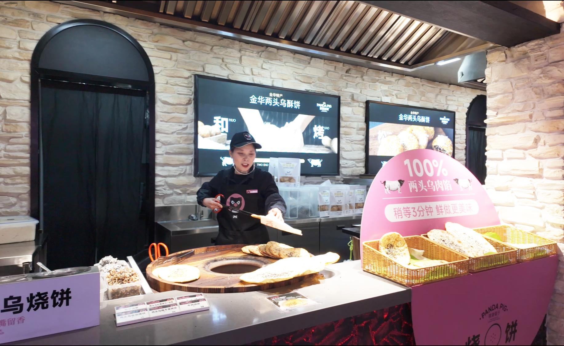 而在金华服务区,这一理念更为具象。通过将农产品与地域文化、旅游体验深度绑定,这里将简单的“买特产”升级为沉浸式的“逛展销”。金华服务区聚焦金华两头乌这一全国农产品地理标志,将整个空间打造成以“熊猫猪猪”为主题的“乐园”。