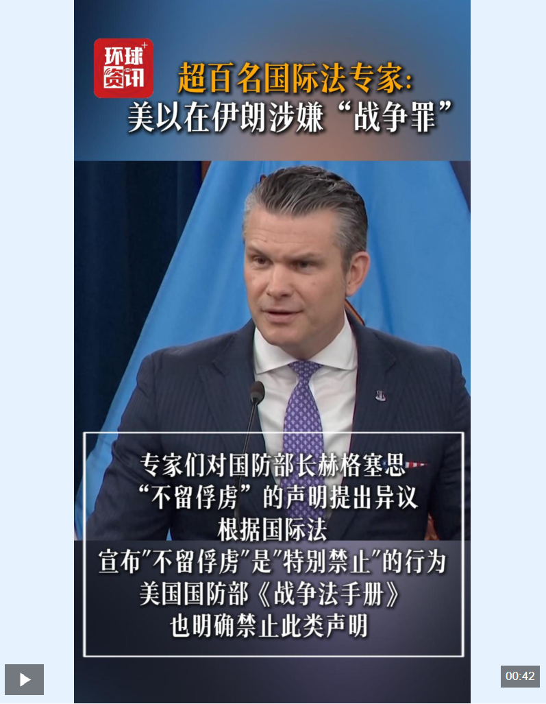 视频|美国超百名国际法专家警告 美以在伊朗涉嫌“战争罪”