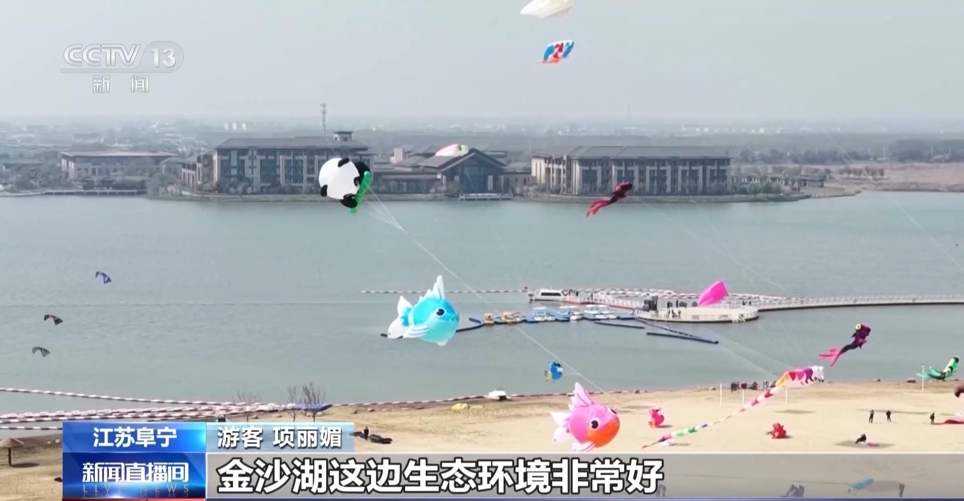 游客 项丽媚:金沙湖这边生态环境非常好,在这里不仅欣赏到来自全国各地的精品风筝,还可以踏青赏春。