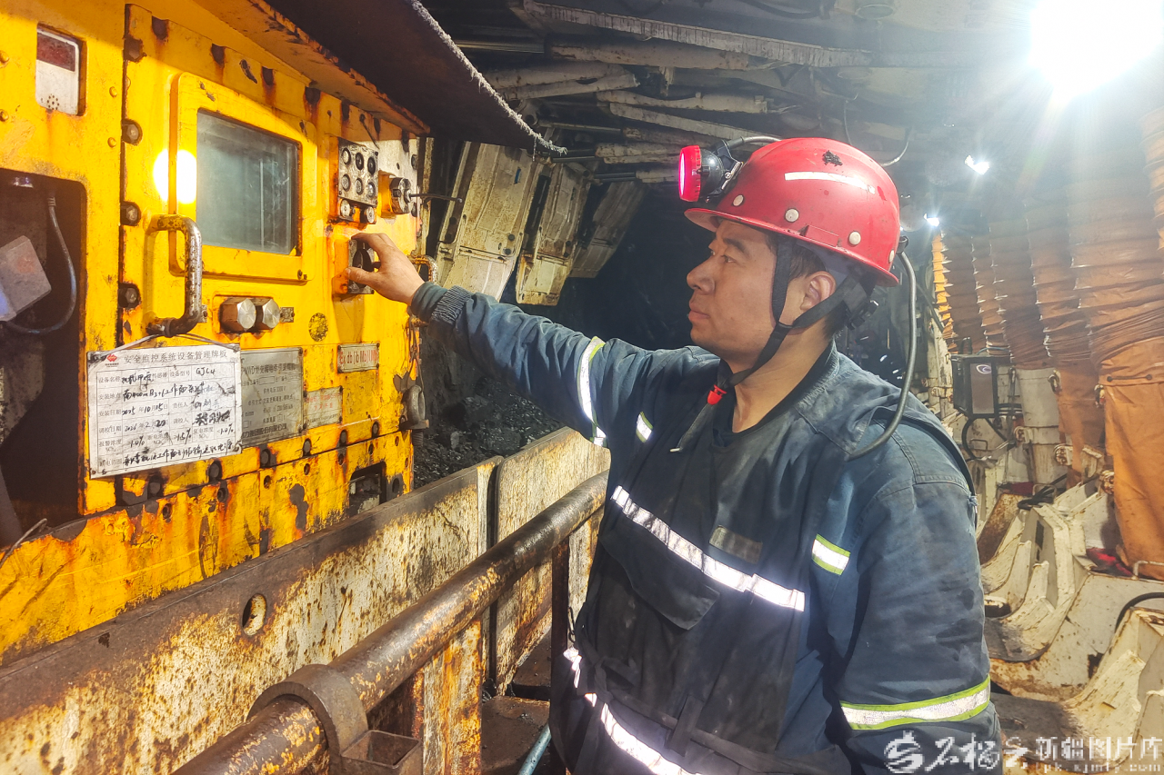 郭顺福对采煤机进行开机前安全确认工作。朱元元摄