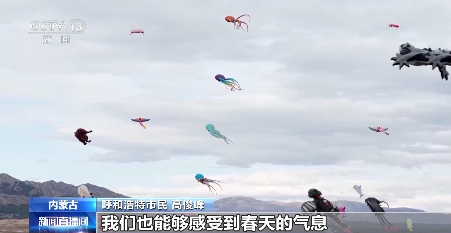 呼和浩特市民 高俊峰:看着天上五颜六色的风筝,我们也能够感受到春天的气息。