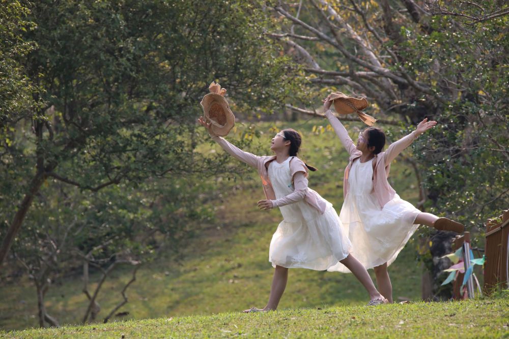 ↑4月4日,两名学生在云南省勐腊县中国科学院西双版纳热带植物园内玩耍。新华社发(李云生摄)