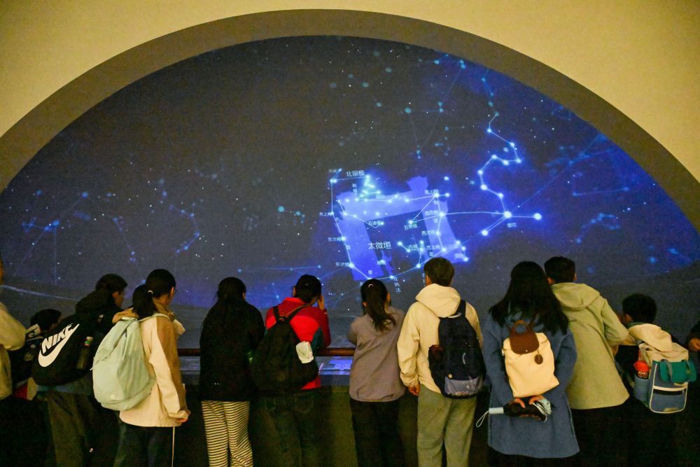 ↑4月3日,学生在南京城墙博物馆参观。新华社发(杨素平摄)